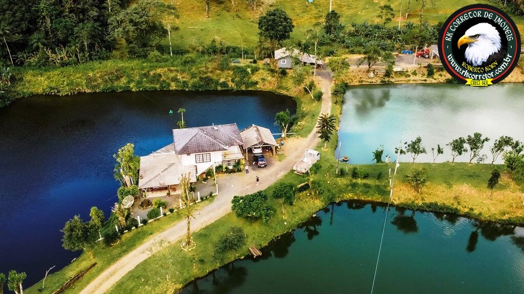 Chácara com três finalidades, sendo residencial, lazer e comercial devido à piscicultura e criação de gado. Área total de 121.200,00m2 na estrada Rio da Prata - Pirabeiraba. Possui 3 lagos destinados à criação de peixes (tilápias), produzindo em torno de 25.000kg a cada 10 meses. O total dos 3 lagos perfaz 15.000m2 de lâmina d\'água, com criação dentro das mais avançadas técnicas de manejo, produzindo peixes de extrema qualidade, ressaltando a excelente qualidade da água dos mesmos. Área em pastagem com criação de gado, mangueiro, painéis de produção de energia fotovoltaica, ponte sobre um rio com águas cristalinas, ideal para recreação nas épocas quentes do ano. Possui um chiqueiro com criação ativa de suínos, um galpão para depósito e manejo com a ração utilizada nos lagos, servindo de abrigo para trator também. Residência principal com 3 dormitórios, 2 banheiros, sala de estar/jantar, lavanderia, garagem, área de festas com churrasqueira. Residência para caseiro com 2 dormitórios, sala, cozinha, banheiro, área de serviço e garagem coberta. Distante 1300m da rodovia SC 418, acesso privativo a partir da estrada. Nos fundos, parte com topografia ondulada, com pastagem, mata nativa e nascente. Possui documentação 100% regular, CAR, etc. Estuda-se proposta de permuta por um ou mais imóveis em Joinville, praia, etc por um valor máximo de R$800.000,00. Valor atrativo, considerando as benfeitorias e dimensões do imóvel. R$2.000.000,00. Visitas e informações mais detalhadas somente com o corretor autorizado. Não perca esta fabulosa oportunidade. Morar num local aprazível, junto à natureza exuberante e ao mesmo tempo obter lucros com a produção exercida sobre o imóvel. Obs: Exija sempre a credencial do corretor de imóveis que for lhe atender para garantir a sua segurança e a segurança do negócio.